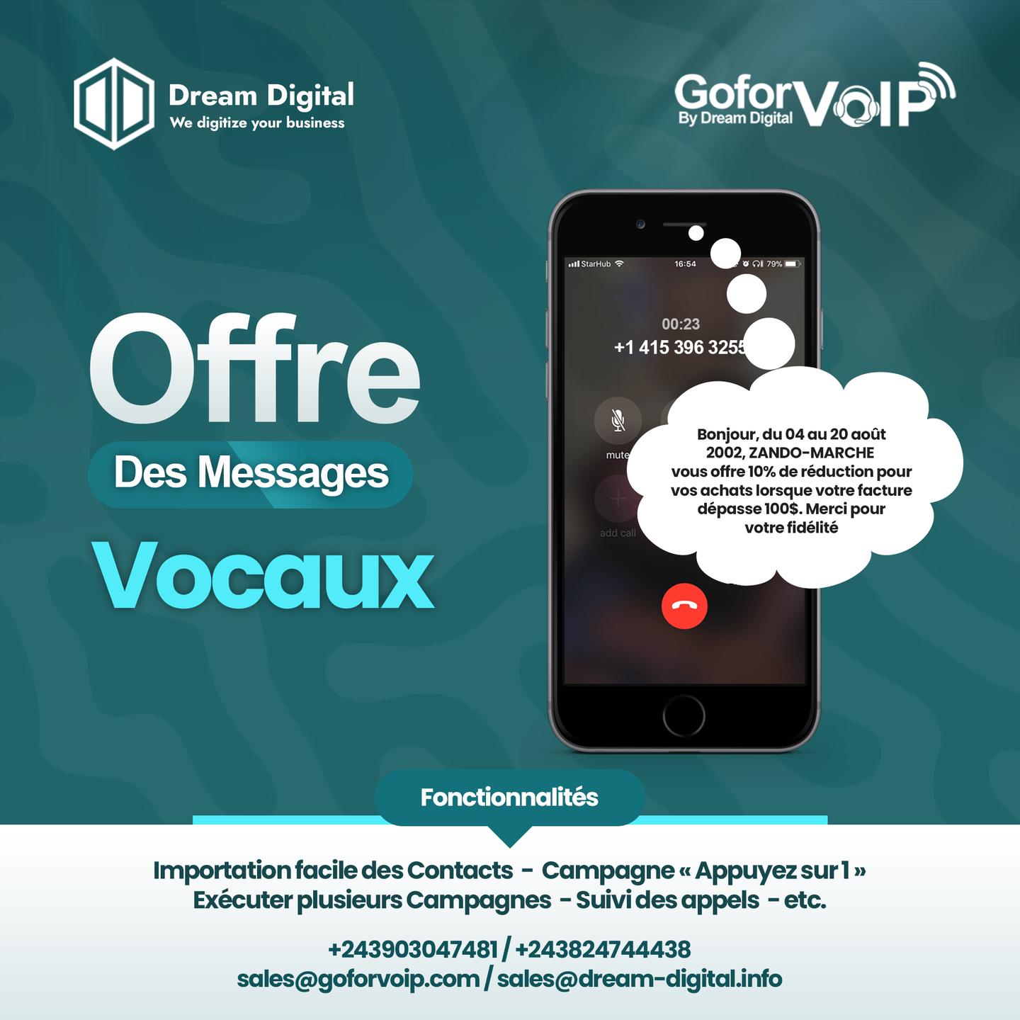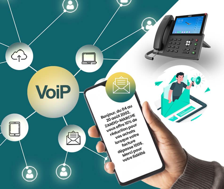 Nous proposons des services tels que : 1. Bulk SMS 2. Service VoIP 3. SMS Vocaux 4. WhatsApp Business Api 5. Odoo 6. Saiba 7. Etc…